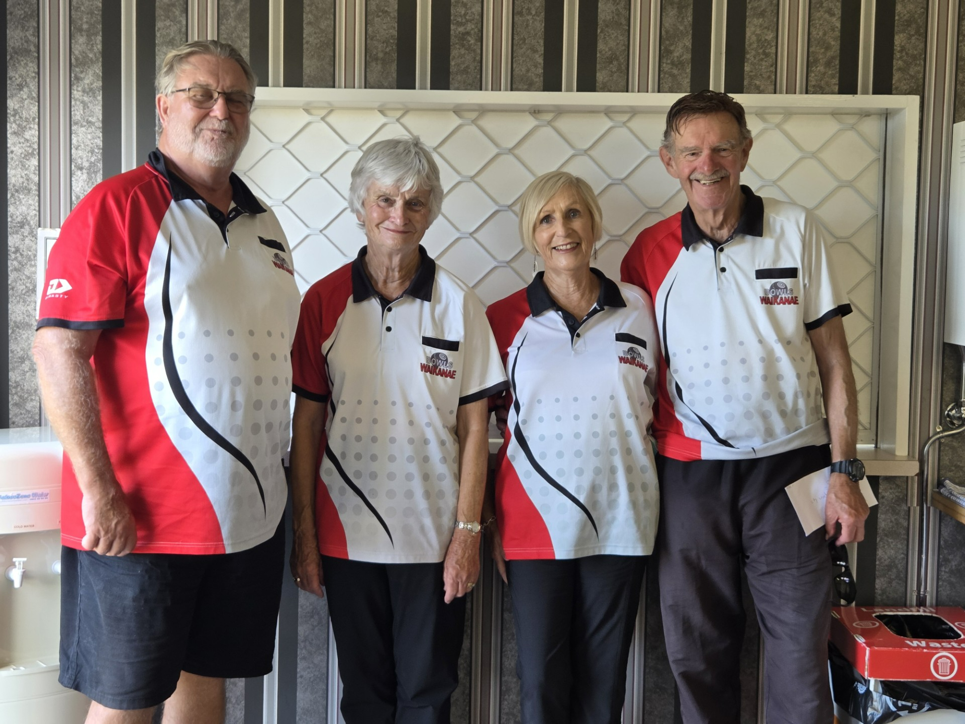 On the first day they won 22-9 against Levin, lost 16-19 against Raumati, but then had a great win 20-5 against Bowls Waikanae's team of Robin Doughty, Barry Sutton, Lorraine Harvey and Carole Clout.